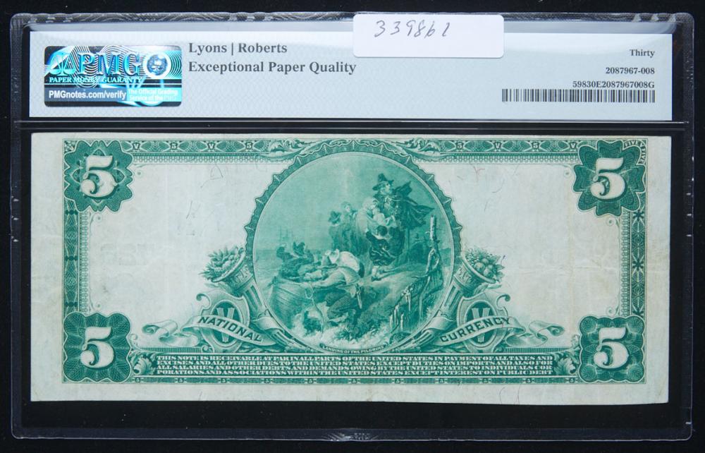 Lot 668 of 2575: $5 National Bank Note. Merchants NB, Salem, MA. Ch. 726. Fr. 598. PMG Very Fine 30 EPQ