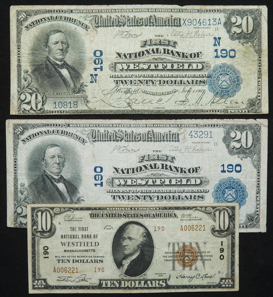 Lot 740 of 2575: Trio of First NB, Westfield, MA notes. Ch. 190.