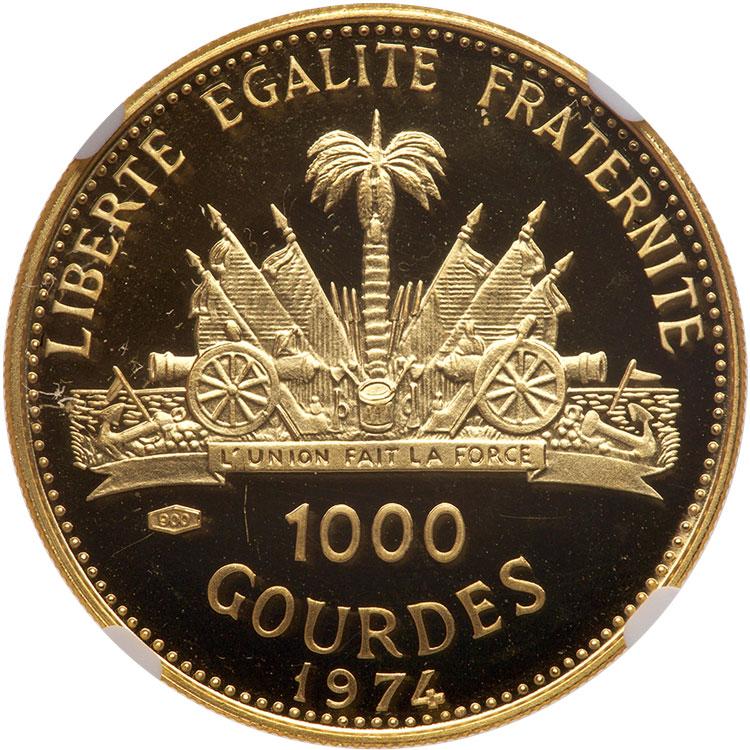 Lot 1410 of 2575: Haiti. 1000 Gourdes, 1974 NGC PF69 UC