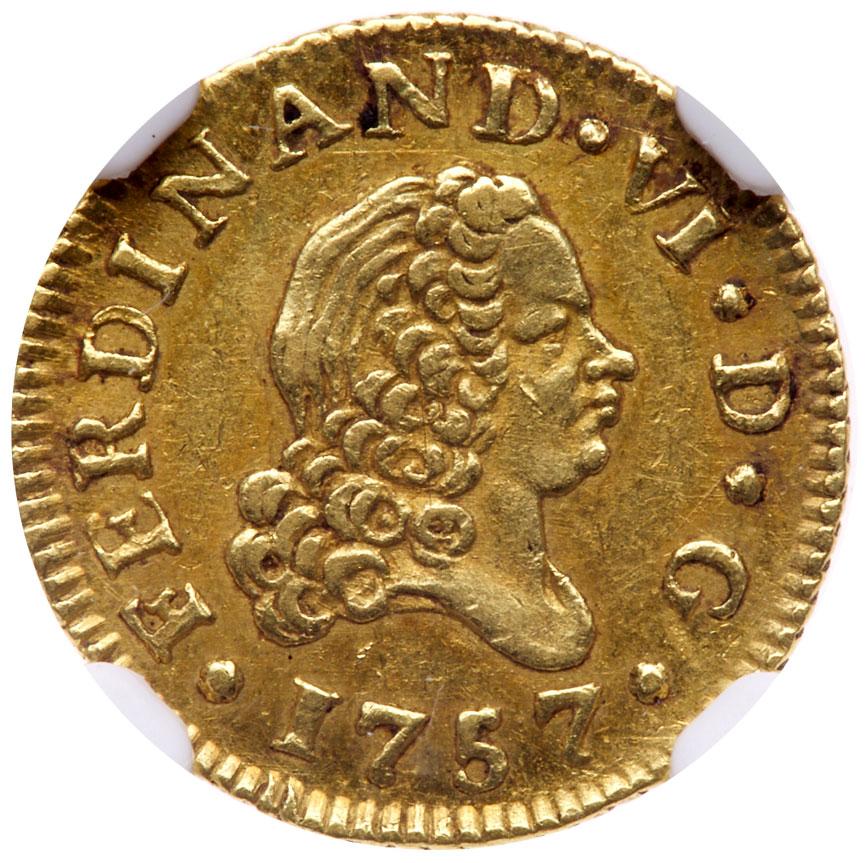 Lot 1573 of 2575: Spain. ½ Escudo, 1757-JB (Madrid) NGC AU53