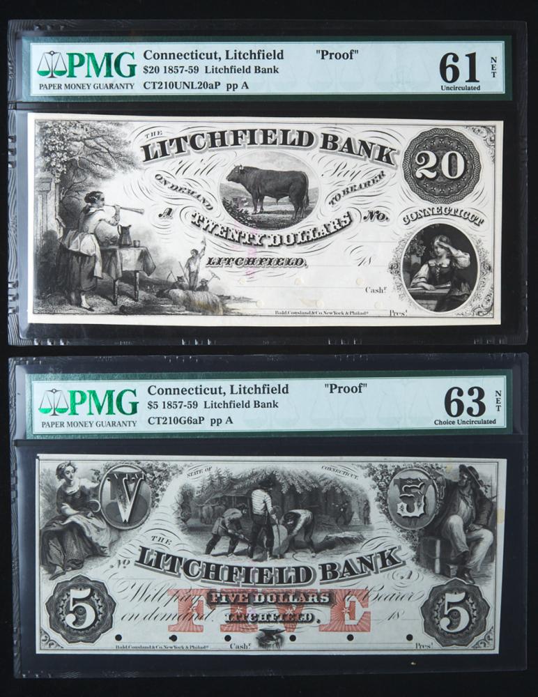 Lot 593 of 2575: Connecticut, Litchfield. Litchfield Pair of Proof Notes.