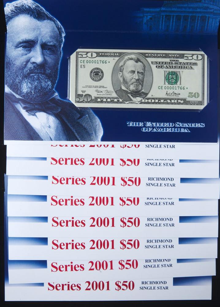 Lot 745 of 2575: 10-piece lot of 2001 $50.00 Star Notes from the Federal Reserve Bank of Richmond