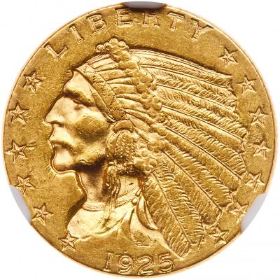 Lot 985 of 1997: 1925-D $2.50 Indian NGC MS62