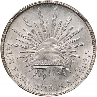 Lot 1876 of 1997: Mexico. Peso, 1908-Mo AM NGC MS61