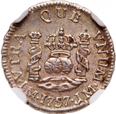 Lot 1915 of 1997: Peru. ½ Real, 1757-JM (Lima) NGC MS62
