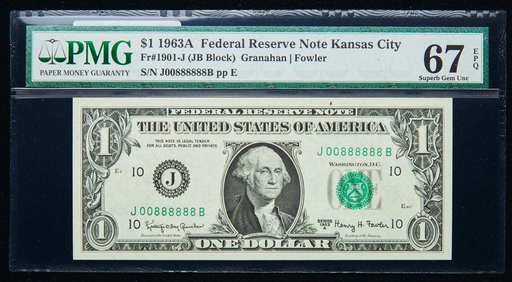 Lot 204 of 1997: seven high grade $1 FRNs from #00000008 to 08888888