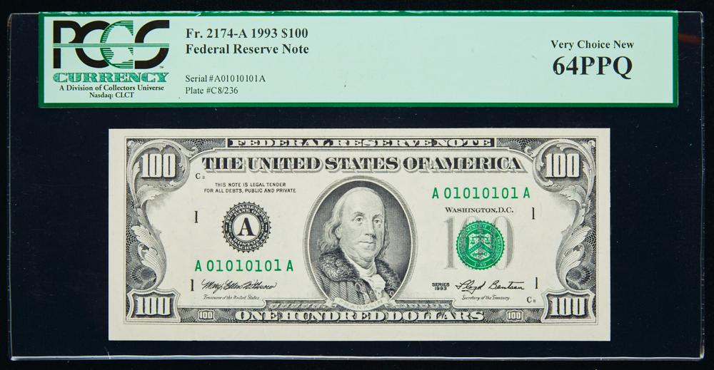 Lot 208 of 1997: $100 1993 FRN A01010101A