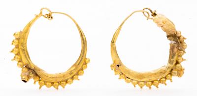 Lot 559 of 937: Matched Pair of High Karat Gold Roman Earrings, ca. 2nd-3rd Centruy A.D.